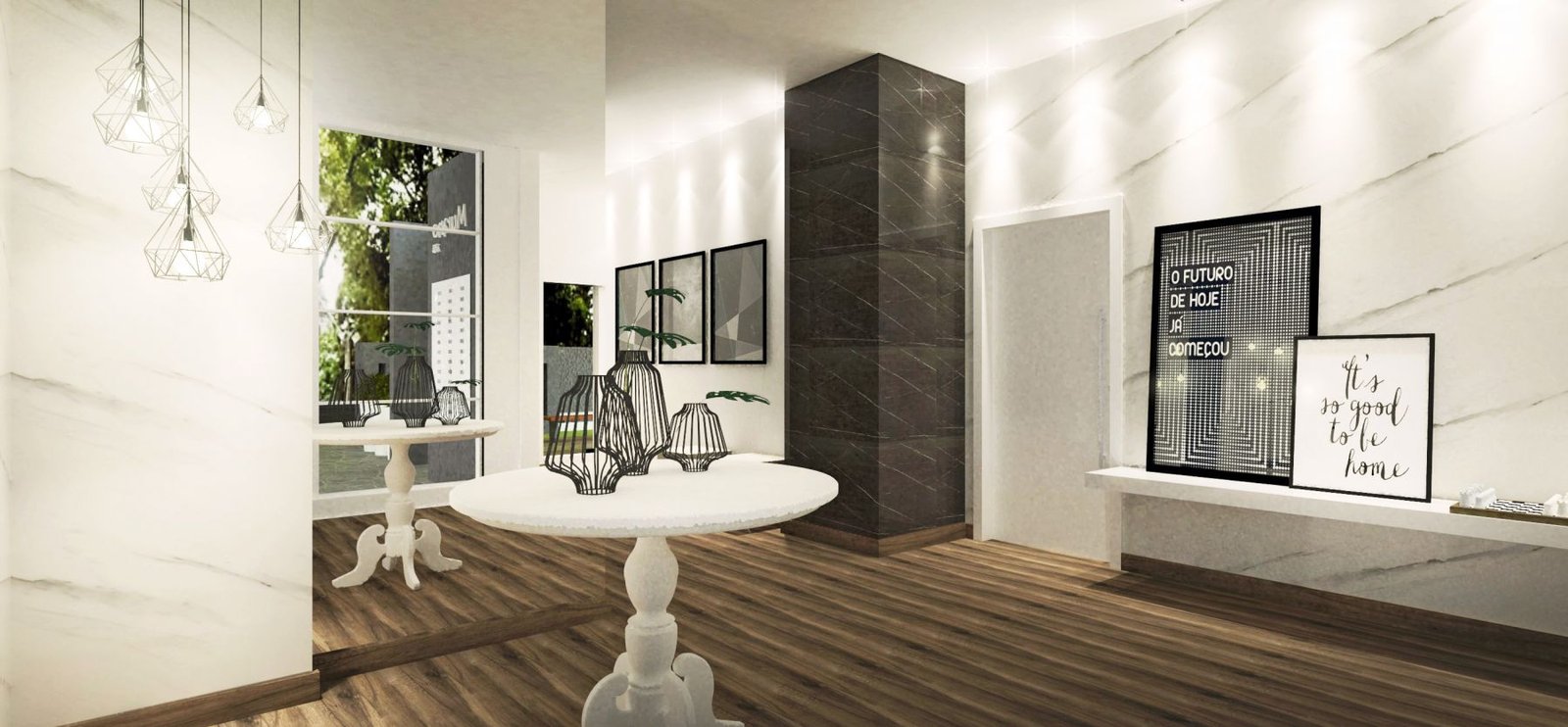 Moderno e bem iluminado, o Hall de Entrada é o cartão de visitas do Residencial. Além do design, funcionalidade com acesso a 2 elevadores.