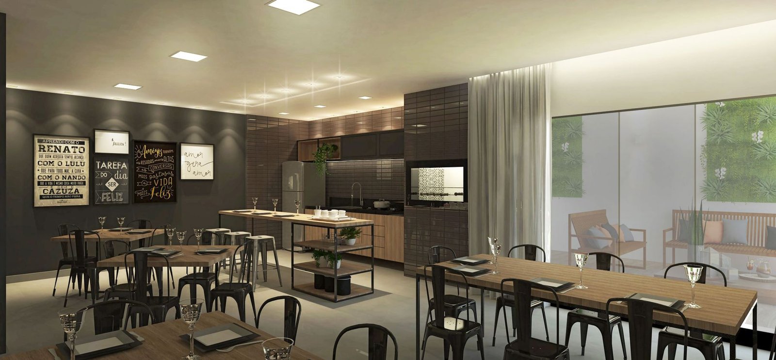 A beleza dos vidros Murano pode ser traduzida nestes 2 salões de festa do Residencial. Espaços amplos, bem iluminados e com ventilação adequada para os melhores eventos.