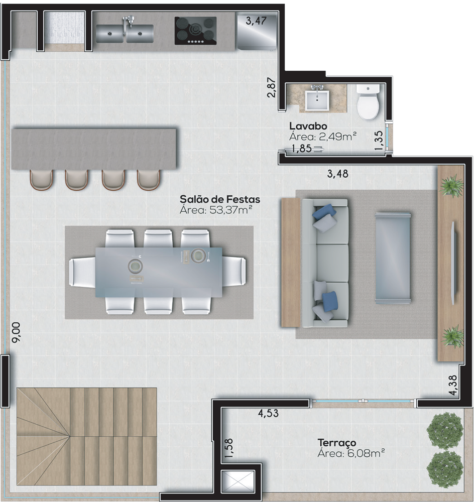 Áreas comuns mobiliadas e decoradas